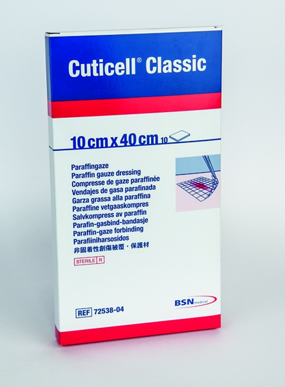 - Cuticell® Classic besteht aus offen gewebter Baumwollgazen, die mit Weichparaffin imprägniert ist.