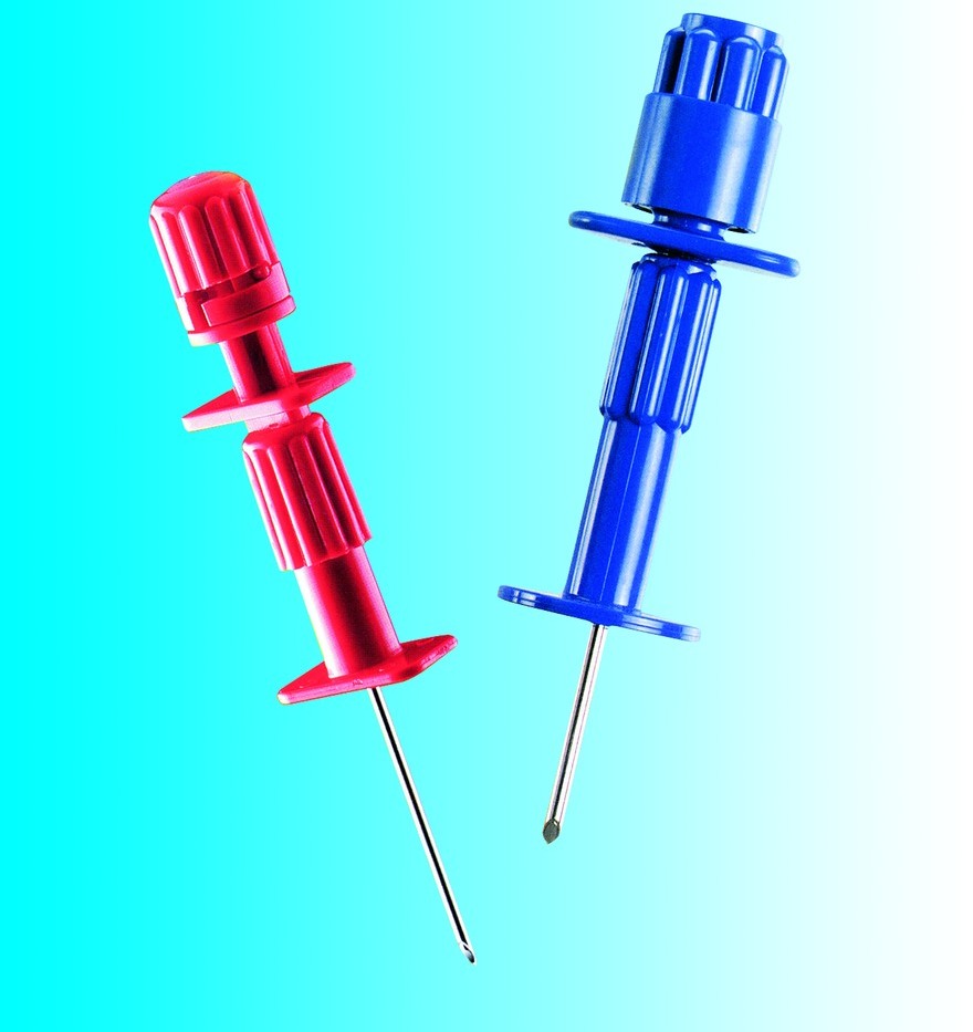 - Diese scharf lanzettenförmig geschliffene Spezialnadel dient zur direkten Probenentnahme (Aspiration) am hinteren Beckenkamm, zur Sternalpunktion oder Knochenmark-Infusion