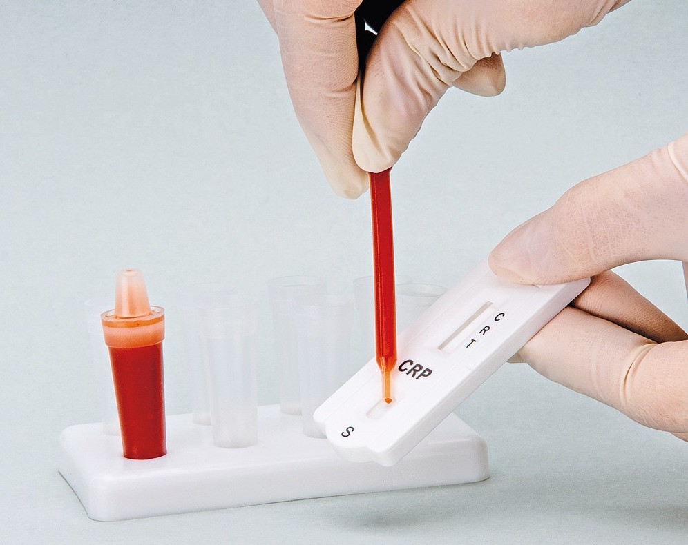 - Schnelltest CrP (C-reaktives Protein) zur Beurteilung der Schwere von entzündlichen Erkrankungen. Mit dem CrP Test kann festgestelltwerden, ob eine Entzündung oder ein Infekt im Körper besteht und ob sie durch Viren oder Bakterien hervorgerufen wurde
