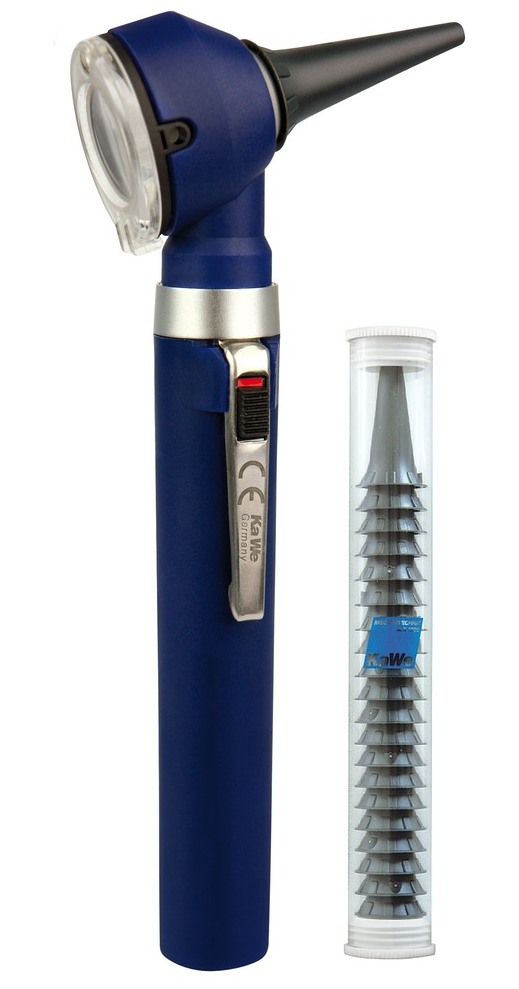 - Tasche mit je 10 Stück Einmal-Ohrtips, Ø 2,5 mm und Ø 4,0 mm farblich passend zum Otoskop
